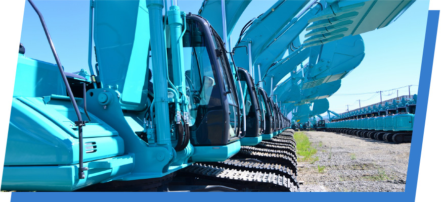 私たちのモットーは「いつでも、どこでも、どんなものも。より早く、より近くから、より良いものを提供すること。」。重機、軽機、特殊機械を問わず、内外の主流メーカーから、あらゆる建設機械を購入。営業マンが、豊富なメニュー6万点の中から、各現場にふさわしい機種を選択・ご提案させていただき、最も近い営業拠点からお届けしています。