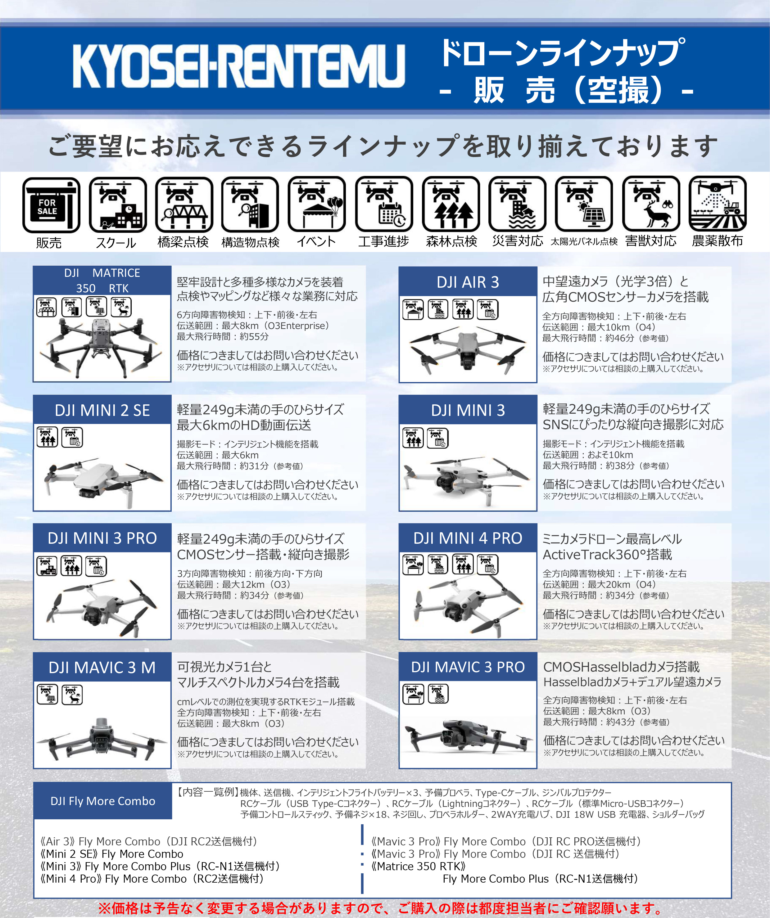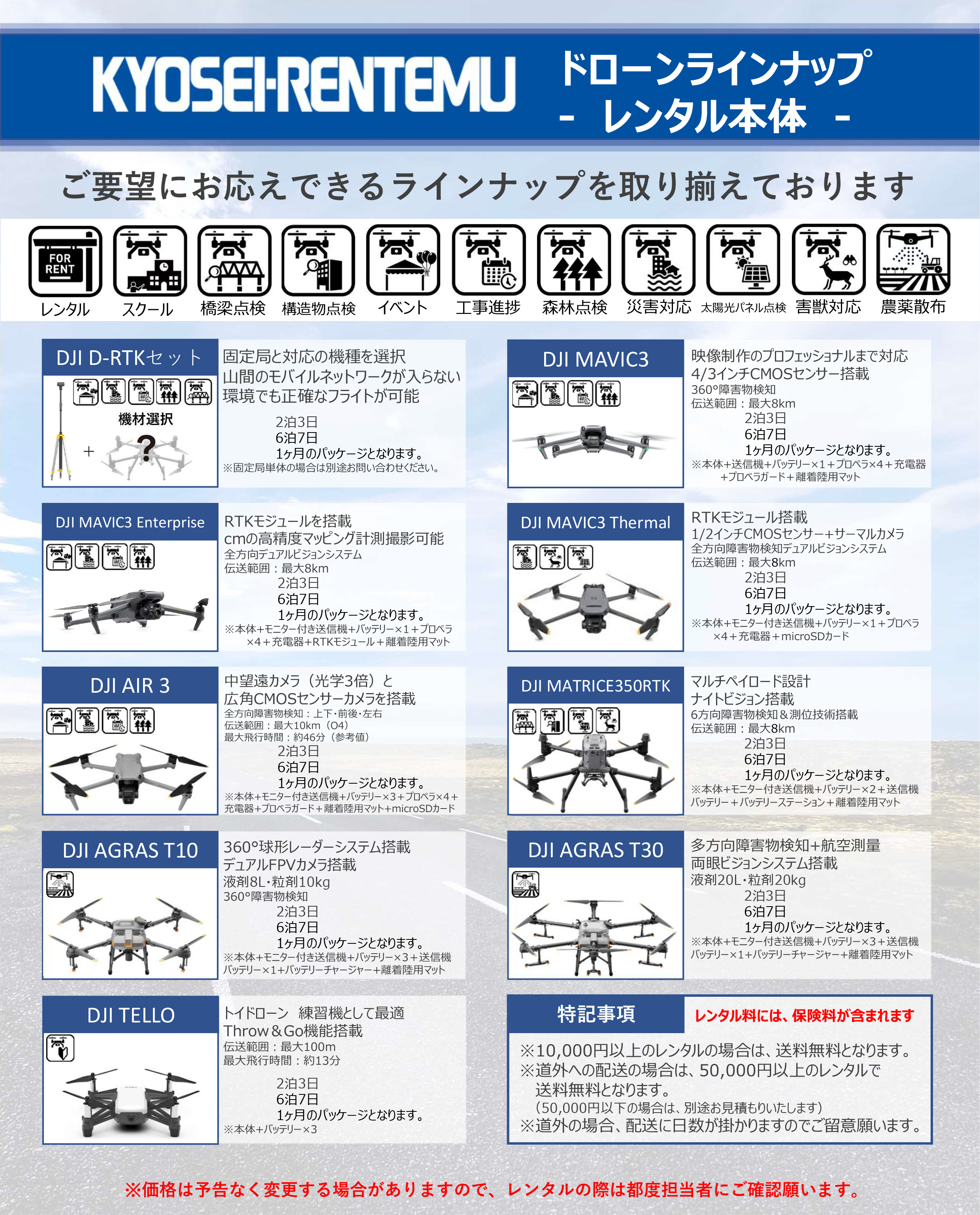 - 開催地区によっては、別途「飛行施設利用料」が発生する場合がありますので都度お打ち合わせ及びご相談させて頂きます。