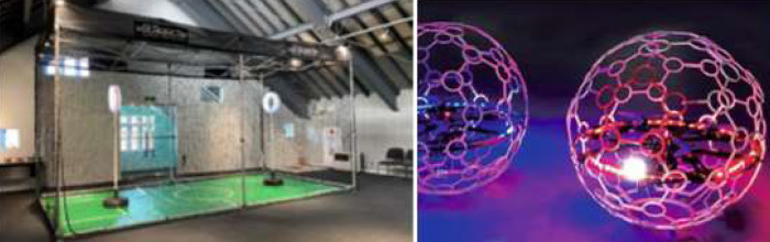 スクール2階にはドローン操縦の基礎を学ぶことが出来る全天候型練習場(2面)を完備しています。