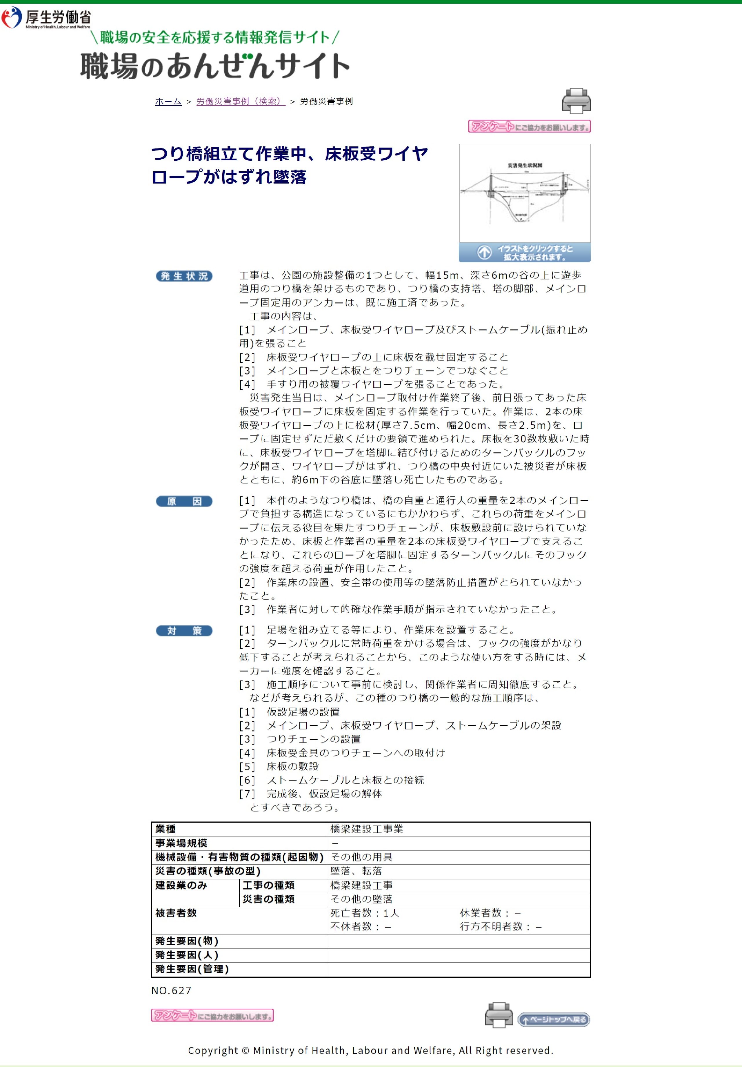【PDFダウンロード】つり橋組立て作業中労働災害事例