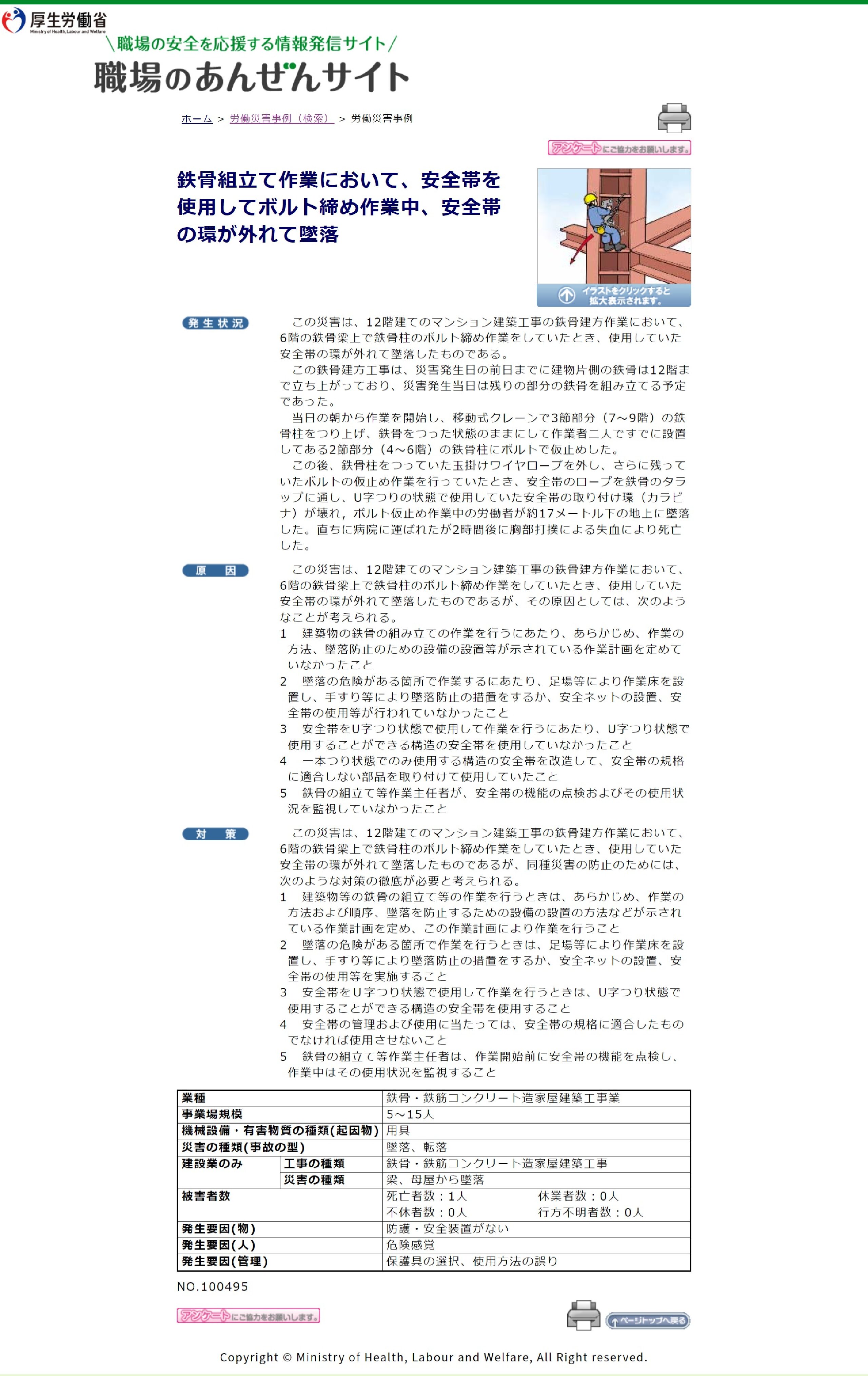 【PDFダウンロード】鉄骨組立て作業中労働災害事例