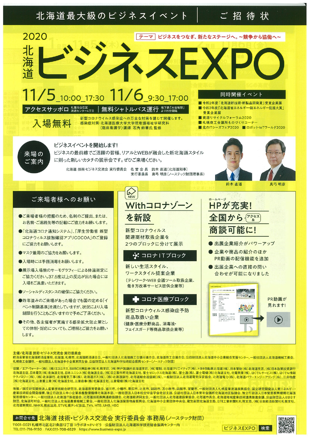 「 2020北海道ビジネスEXPO 」の詳細は、以下のリンクをご参照ください。
