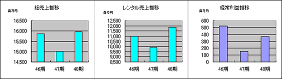 ~政権交代時のエアポケットを巧みに追い風とし、レンサルティングを軸にした積極果敢な営業展開が奏功。 - 特にレンタル業の基軸である”レンタル売上”が順調で、2期前の実績を上回る。