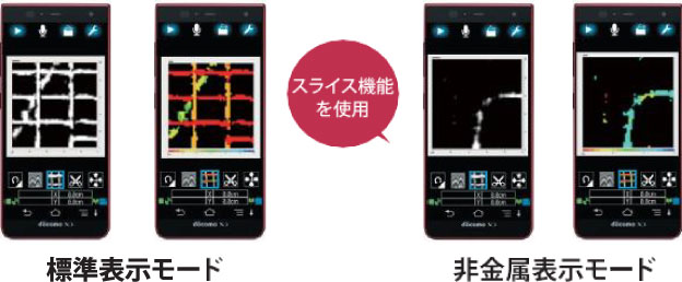 付属のスマートフォンやタブレットで測定結果を3D表示できます。