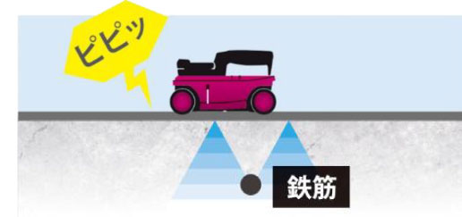 墨出しの際に、鉄筋の位置をブザーとLEDの点滅でお知らせ!鉄筋の見落としを軽減します。