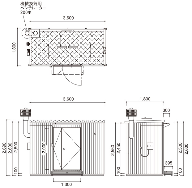 | オプション設備 | 自然換気式ベンチレーター 鋼製ステップ 鋼製庇 |