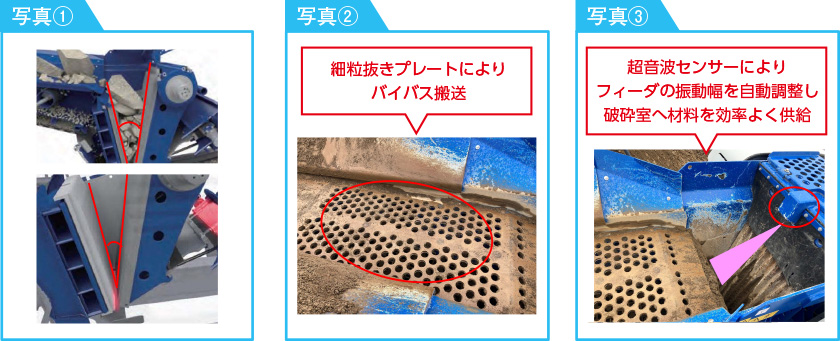 - 不要な細粒物をバイパス搬送することで『『破砕効率アップ』 ※写真②