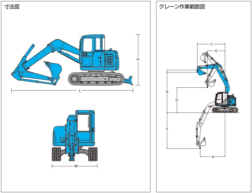 | クレーン作業範囲(mm) | A:最大作業半径 | 5,630 | 6,530 |