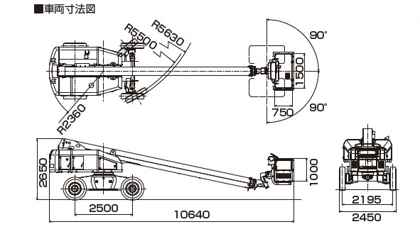 ※燃料は軽油です。※旋回角度は360度です。※ホイール仕様は最寄りの営業所までお問い合わせください。