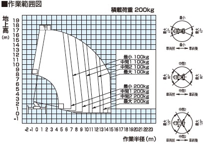 | 最大作業半径(mm) | 15,400(100kg積載時) | ||
