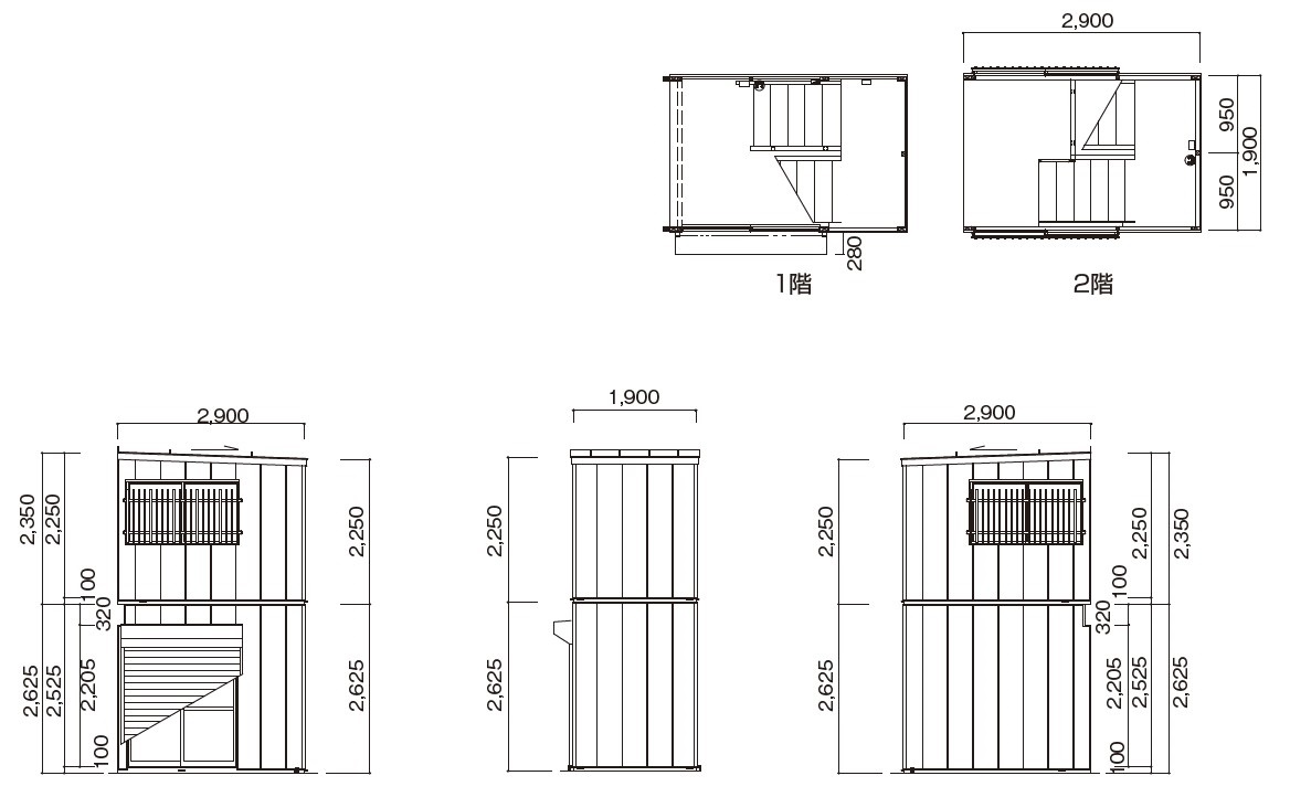 | 外部寸法・仕様 | 全長D(mm) | 1,900 | |