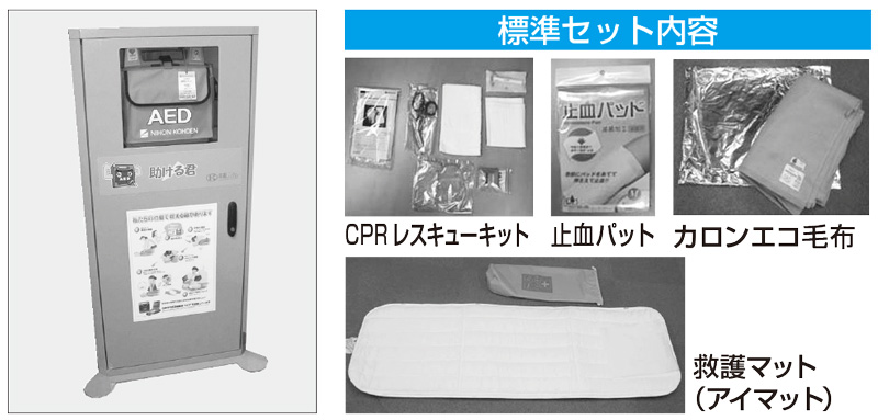 備品 救命(心臓)BOX カタログPDF スペック 商品コード RP1 10002 寸法(L×W×H)(mm) 443×745×1,206 質量(kg) 35 ※AEDを収納するコーナーボックスです。 ※AED本体は別途ご注文ください。 email この商品について問い合わせる