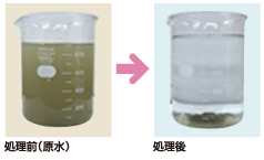 100g~250g程度(100ppm~250ppm/ℓ)添加 - 工場濁水等(廃液内容が複雑な廃水)