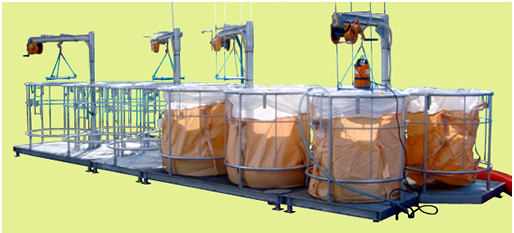 ④簡易脱水機は大きな動力を用いず、一般的な土嚢トンパック袋にてスラッジを約1/10 に減量します。